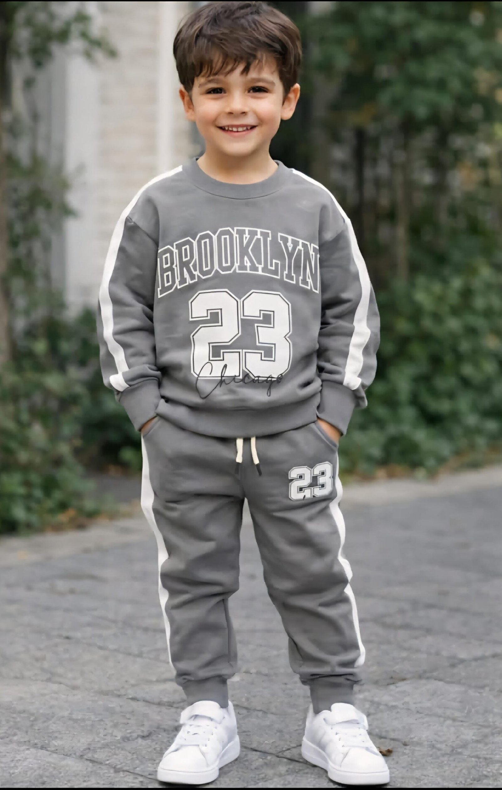 νετο και κομψό γκρι σετ φόρμας για αγόρι, ιδανικό για καθημερινή χρήση. Αποτελείται από μπλούζα και παντελόνι με άνετη εφαρμογή, προσφέροντας ελευθερία κινήσεων και άνεση όλη την ημέρα. Κατασκευασμένο από μαλακό και ζεστό ύφασμα, είναι κατάλληλο για βόλτες, σχολείο και παιχνίδι. Μια πρακτική επιλογή που συνδυάζει στυλ και άνεση.