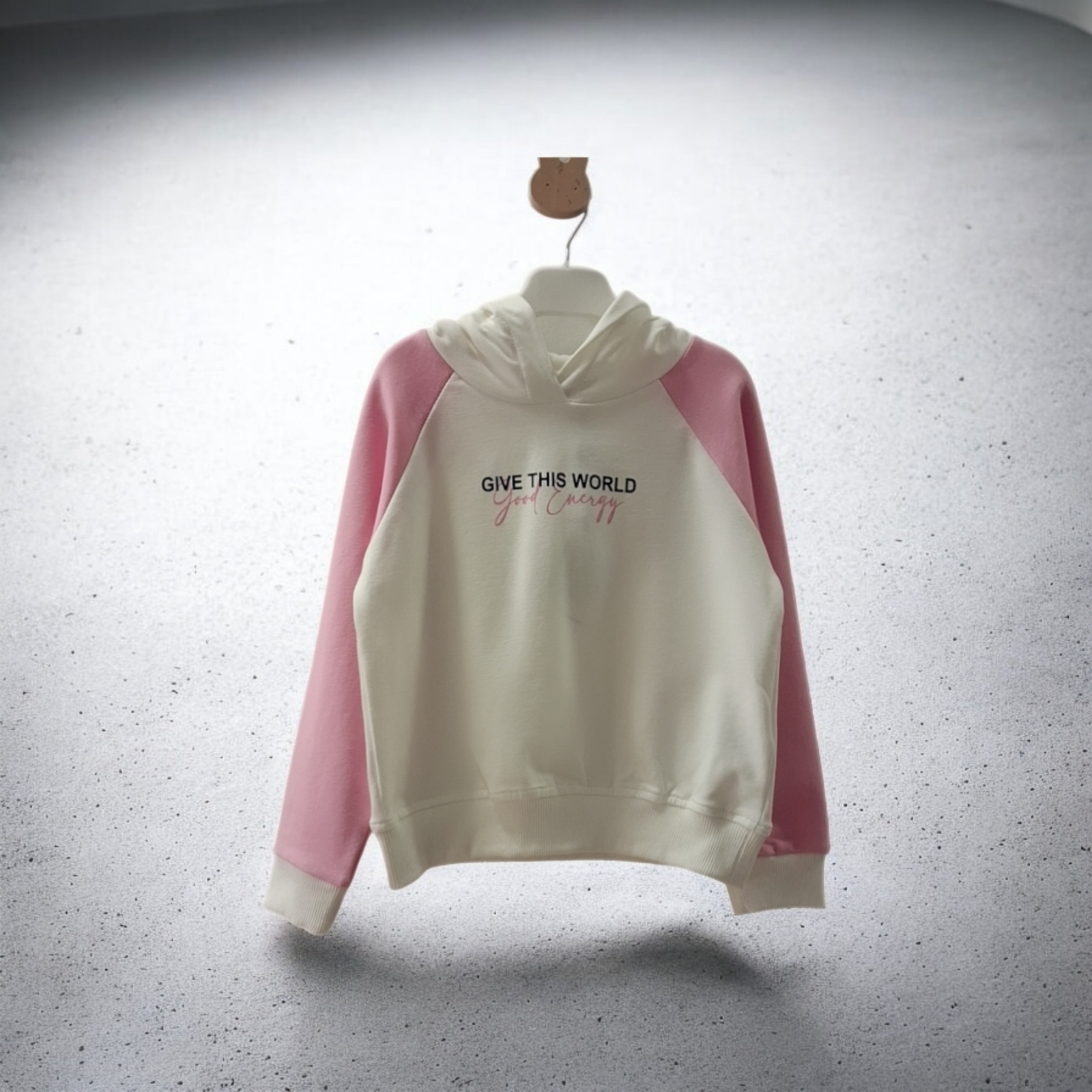 Χαριτωμένη παιδική μπλούζα με κουκούλα σε λευκό χρώμα, διακοσμημένη με ροζ ρίγες που χαρίζουν παιχνιδιάρικο και μοντέρνο look. Η μαλακή υφή της εξασφαλίζει άνεση σε κάθε κίνηση, ενώ η κουκούλα προσφέρει επιπλέον ζεστασιά και προστασία. Ιδανική για βόλτες, σχολείο και καθημερινό παιχνίδι με στυλ και άνεση!