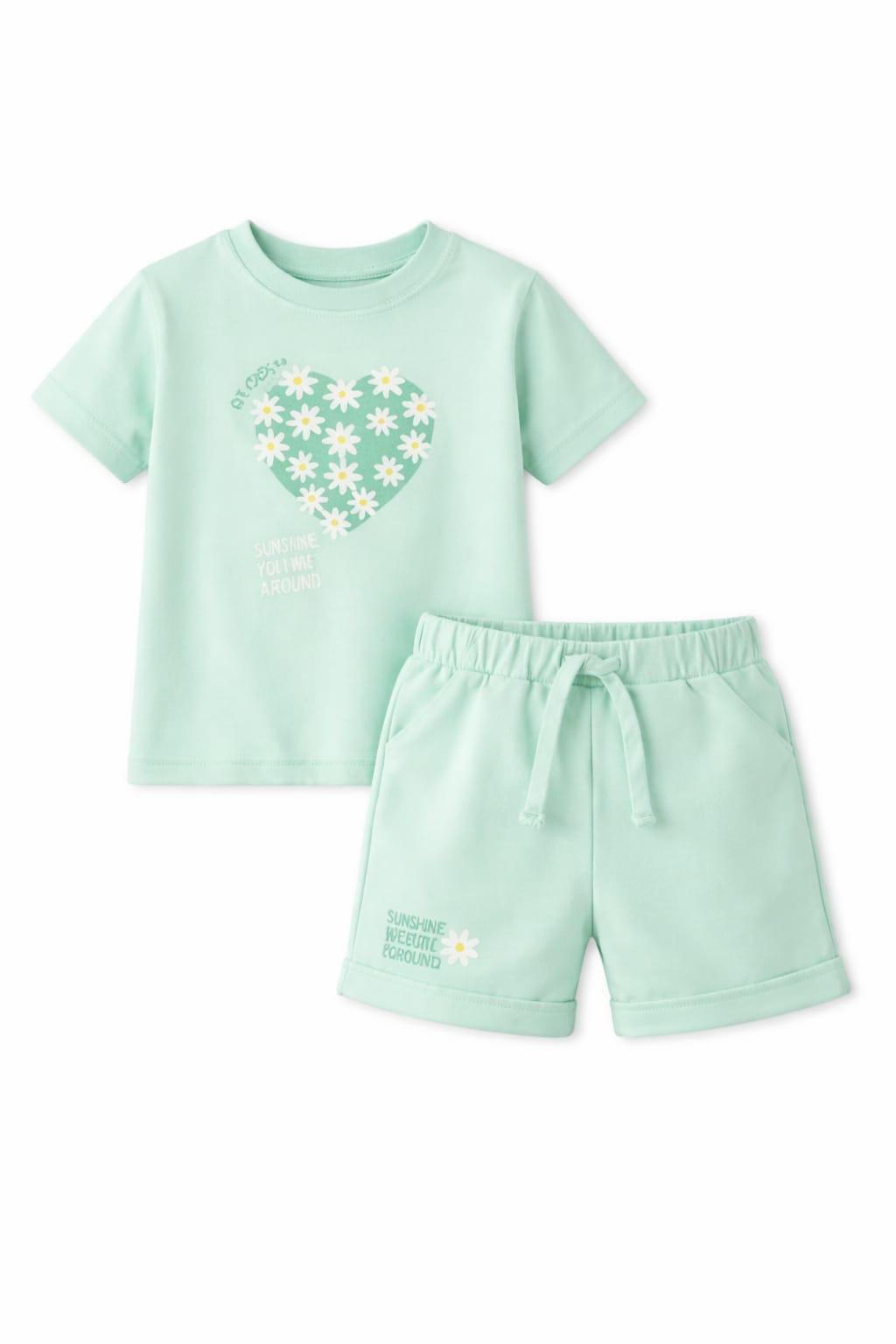 Χαριτωμένο και άνετο καλοκαιρινό σετ για κοριτσάκια σε υπέροχο χρώμα μέντας. Το σετ αποτελείται από μπλουζάκι με όμορφο σχέδιο καρδιάς με λουλουδάκια και άνετο σορτσάκι με λάστιχο στη μέση για τέλεια εφαρμογή. Το μαλακό και δροσερό ύφασμα το κάνει ιδανικό για τις ζεστές ημέρες του καλοκαιριού, προσφέροντας άνεση και στυλ σε κάθε εμφάνιση. Ιδανικό για βόλτες, παιχνίδι και καθημερινή χρήση. ☀️👧💚
