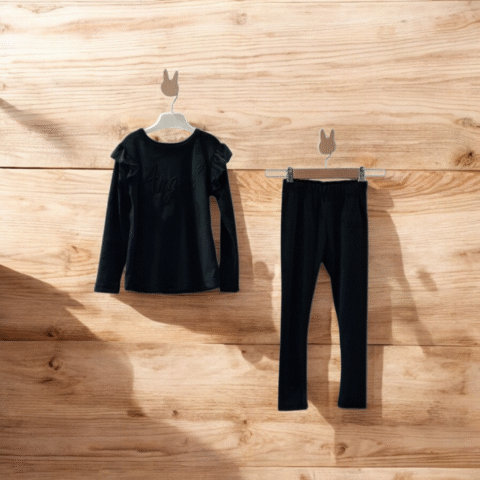 Ένα κομψό και μοντέρνο βελουδέ σετ σε μαύρο χρώμα, ιδανικό για μικρές που αγαπούν το στυλ και την άνεση. Το σετ ξεχωρίζει χάρη στο υπέροχο γραφικό αγγέλου, που χαρίζει μια γλυκιά και ιδιαίτερη πινελιά. Το μαλακό βελουδάκι προσφέρει ζεστασιά και απαλότητα, ενώ η άνετη εφαρμογή το κάνει τέλειο για καθημερινή χρήση, βόλτες ή πιο ξεχωριστές εμφανίσεις. Ένα σετ που εντυπωσιάζει με την απλότητά του και το κοριτσίστικο στυλ του!