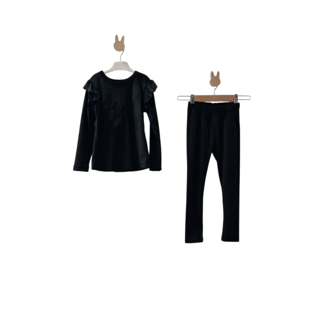 Παιδικό Βελουδέ Μαύρο Σετ με Γραφικό Άγγελου