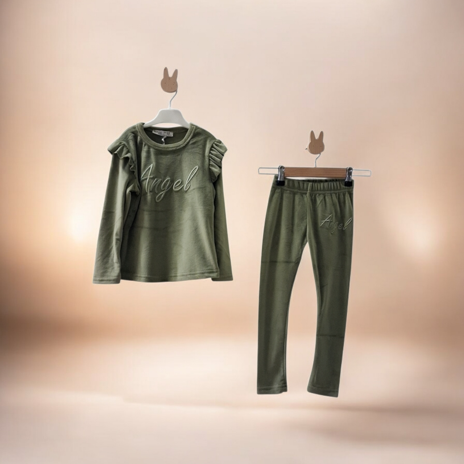 Παιδικό Βελουδινό Σετ Χακί ANGEL – Απαλό & Μοντέρνο