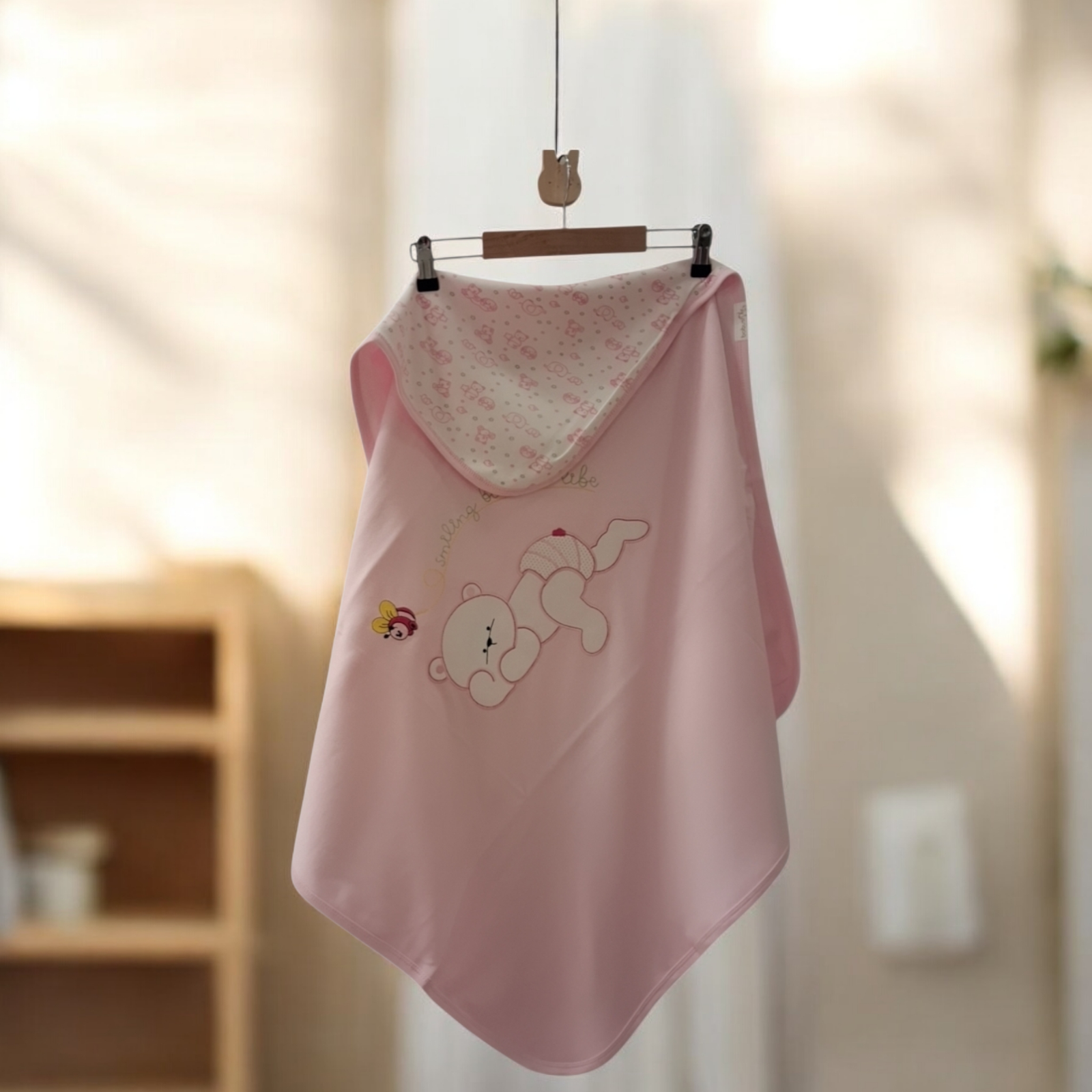 Μια πανέμορφη ροζ πάνα με χαριτωμένο αρκουδάκι, ιδανική για κάθε στιγμή της ημέρας. Απαλή, άνετη και φιλική προς το ευαίσθητο δερματάκι του μωρού, προσφέρει προστασία και γλυκιά εμφάνιση. Τέλεια για βόλτες, αγκαλιές και καθημερινή χρήση, προσθέτοντας μια τρυφερή πινελιά στο μωρουδιακό σετ.