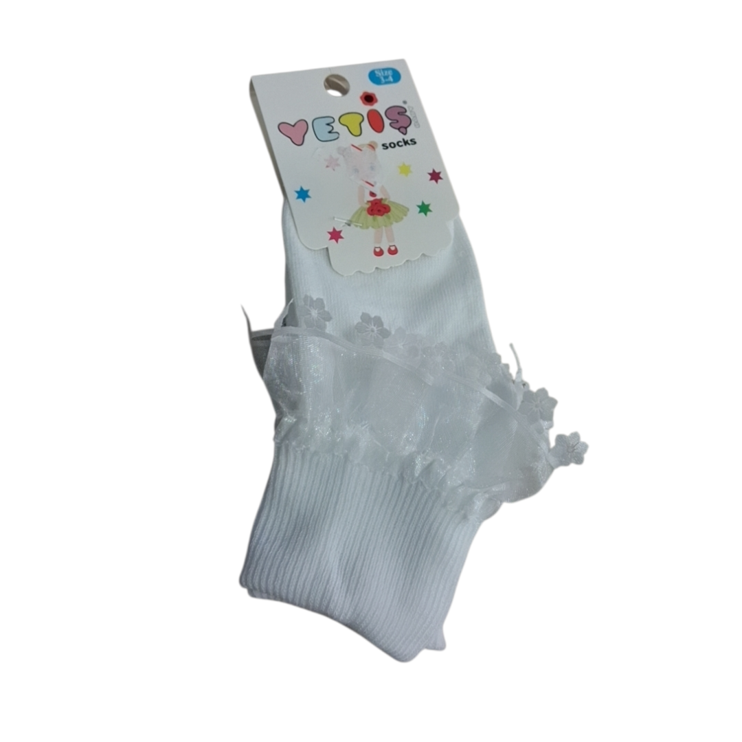 Βρεφικές Λευκές Κάλτσες με Τρέσα Δαντέλα