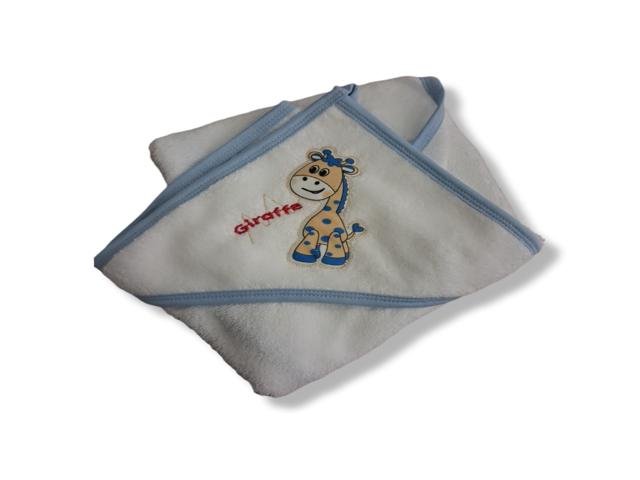 Βρεφική Πετσέτα με Κουκούλα “Giraffe” – Λευκή με Γαλάζιες Λεπτομέρειες
