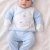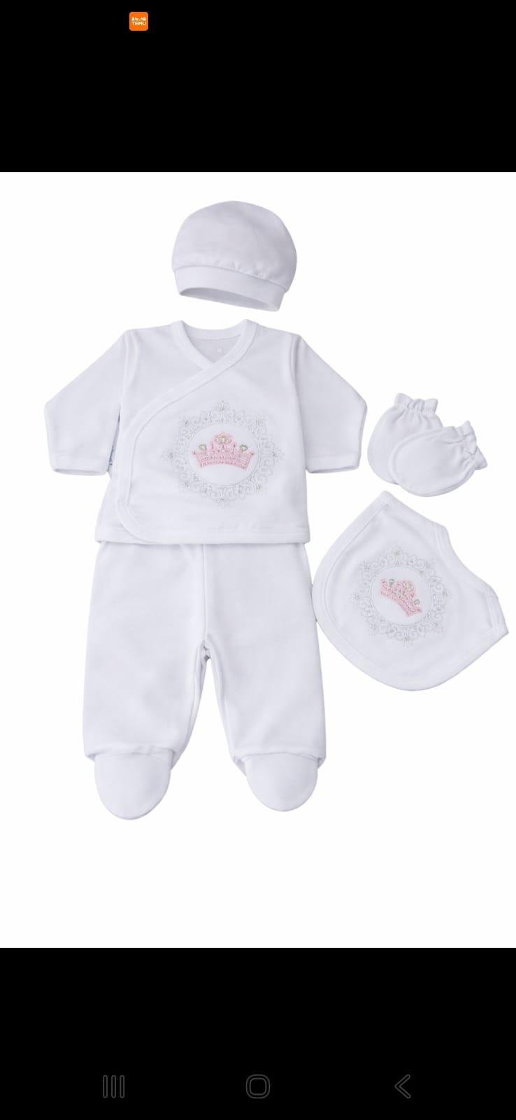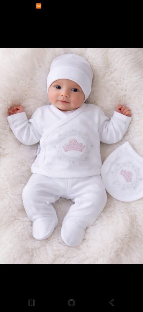 Ένα πανέμορφο βρεφικό σετ 5 τεμαχίων, ιδανικό για μωρά ηλικίας 0-3 μηνών. Φτιαγμένο από απαλά, ποιοτικά υφάσματα που σέβονται το ευαίσθητο δέρμα του νεογέννητου, προσφέρει άνεση και ζεστασιά κάθε στιγμή της ημέρας.