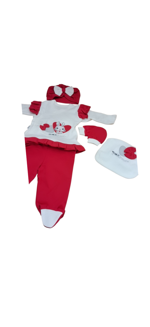 Ανακαλύψτε ένα πανέμορφο βρεφικό σετ 5 τεμαχίων που συνδυάζει ποιότητα, άνεση και κομψότητα. Ιδανικό για νεογέννητα και βρέφη, προσφέρει όλα τα απαραίτητα κομμάτια για τις καθημερινές ανάγκες του μωρού σας.