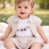 Ένα μοναδικά όμορφο βρεφικό σετ που ξεχωρίζει για την κομψότητα και τη γλυκύτητά του. Σχεδιασμένο με απαλό ύφασμα υψηλής ποιότητας, προσφέρει άνεση και ελευθερία κινήσεων στο μωρό σας όλη την ημέρα. Οι προσεγμένες λεπτομέρειες και το χαριτωμένο του σχέδιο το κάνουν ιδανικό για κάθε περίσταση, από καθημερινές βόλτες μέχρι ιδιαίτερες στιγμές. Ένα σετ που συνδυάζει στυλ και πρακτικότητα, χαρίζοντας στο μωρό σας μια ξεχωριστή εμφάνιση! 👶✨💖