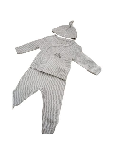 Αυτό το υπέροχο βρεφικό σετ σε γκρι-λευκές ρίγες συνδυάζει την απλότητα με τη γλυκύτητα!